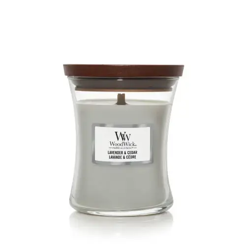 WoodWick Lavender & Cedar scented candle with wooden wick 275 g