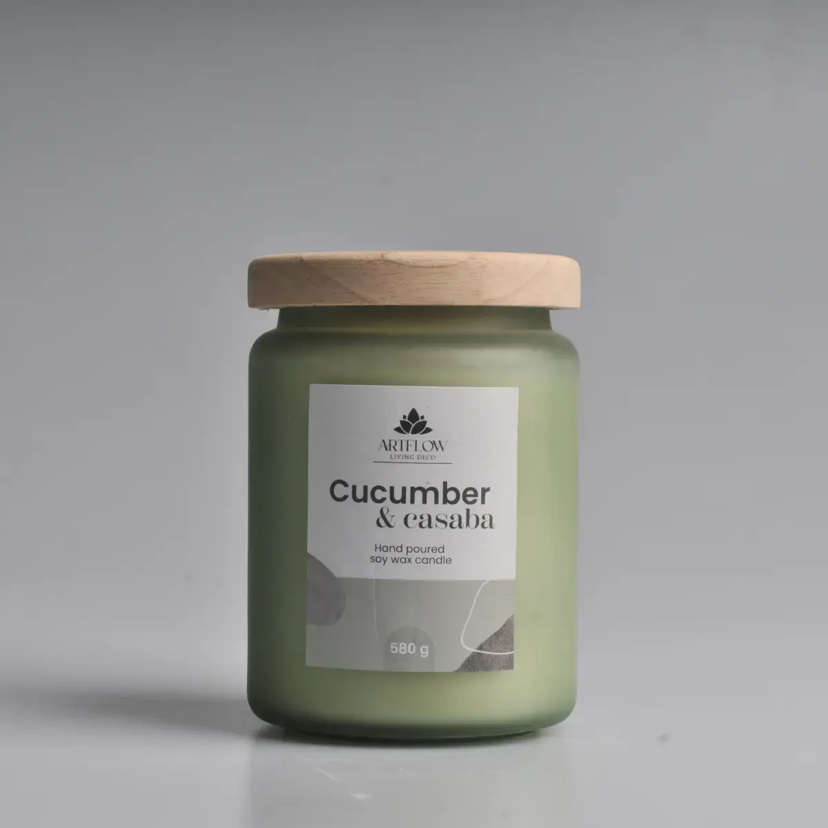 ArtFlow aromātiskā svece Cucumber & Casaba ir roku lieta no augstas kvalitātes sojas vaska, kas rada patīkamu un ilgstošu smaržu jūsu mājoklī. Šī 580 g smagā svece ir elegantā, matētā stikla traukā ar dabīgu koka vāciņu, kas lieliski papildina mūsdienīgu interjeru. Pateicoties sojas vaska dabiskajām īpašībām, svece deg vienmērīgi un tīri aptuveni 60 stundas, piepildot telpu ar maigu aromātu. Sveces dizains ar matētu stikla trauku un minimālistisko etiķeti sniedz ne tikai aromātisku, bet arī vizuāli pievilcīgu interjera akcentu.