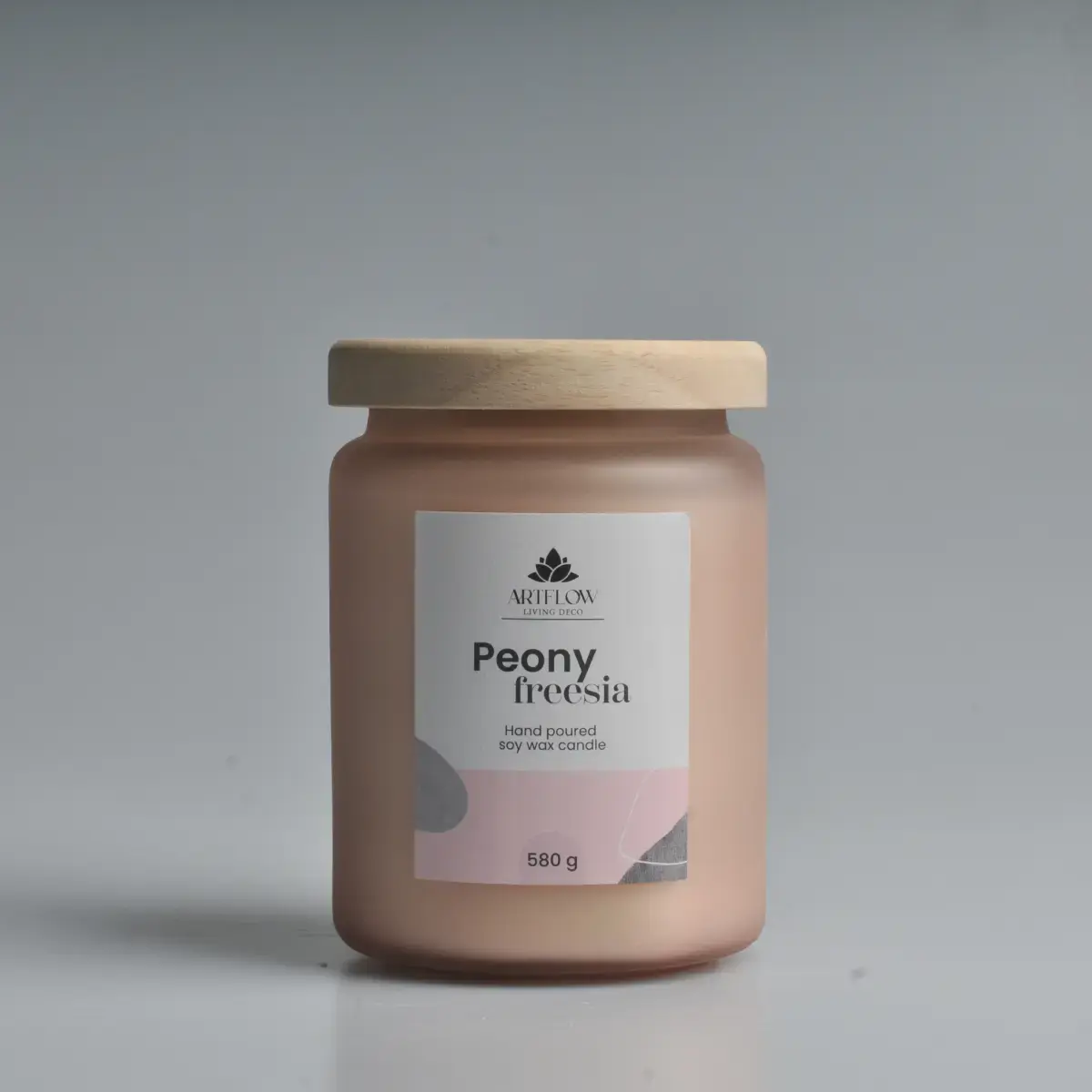 ArtFlow aromātiskā svece Peony Freesia ir roku lieta no augstas kvalitātes sojas vaska, kas rada patīkamu un ilgstošu smaržu jūsu mājoklī. Šī 580 g smagā svece ir elegantā, matētā stikla traukā ar dabīgu koka vāciņu, kas lieliski papildina mūsdienīgu interjeru. Pateicoties sojas vaska dabiskajām īpašībām, svece deg vienmērīgi un tīri aptuveni 60 stundas, piepildot telpu ar maigu aromātu. Sveces dizains ar matētu stikla trauku un minimālistisko etiķeti sniedz ne tikai aromātisku, bet arī vizuāli pievilcīgu interjera akcentu.
