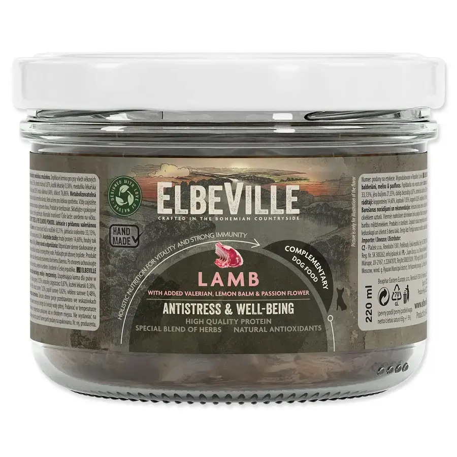 Konservi suņiem – ElbeVille Antistress and Well-being, Lamb with Valerian and Lemon balm, 220 ml