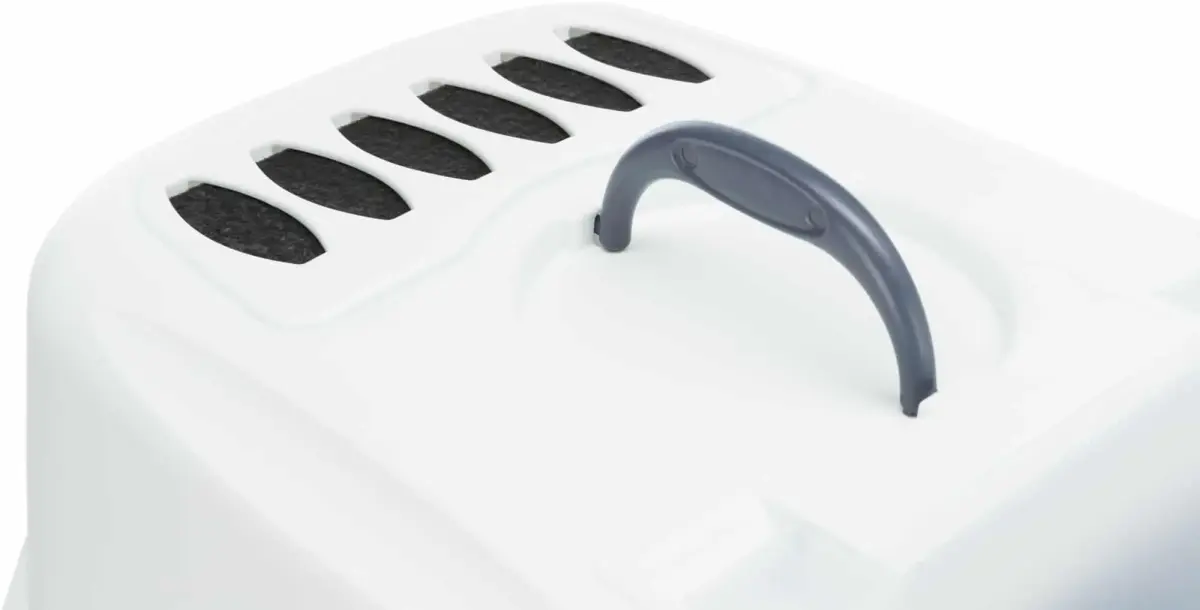 Туалет для кошек -Trixie Vico Easy Clean Litter Tray. Пластиковый туалет с крышкой и дверцей. Просторный туалет с большой нижней частью и системой, предотвращающей утечку мочи между верхней и нижней частью. Легко открывающаяся дверца. Туалет оснащен сменным угольным фильтром, который задерживает и уменьшает запахи. Размеры: 40*40*56 см. Цвет: серый/белый.