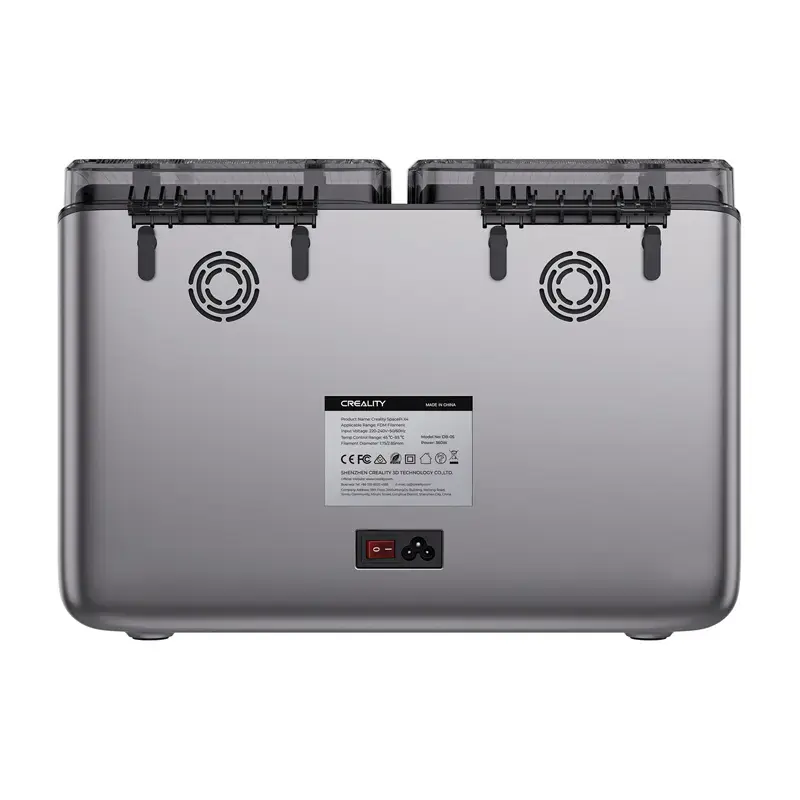 Creality SpacePi X4 is a powerful dual-chamber filament dryer, allowing you to dry as many as 4 spools simultaneously with full temperature control from 45 to 85°C. Thanks to the active drying technology, fast heating and quiet operation, you will prepare PLA, PETG, TPU, ABS or PA-CF filaments for printing in a reproducible and stable way, eliminating the problem of moisture, bubbles and shagging during printing.