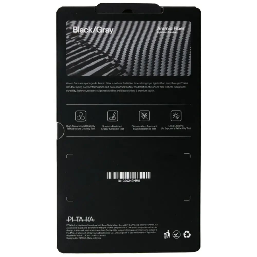 The foundation of the Ultra-Slim series is aramid fiber, which is commonly used in the aerospace and protective industries. In the PITAKA case, this material gains a new, designer character. It is extremely resistant to abrasion and scratches, while being light and thin, making it perfect for everyday use. Aramid retains its properties for a long time, does not discolor, and does not lose its original texture. Additionally, its characteristic weave gives the case a modern look that stands out from standard accessories. This is durability combined with style.