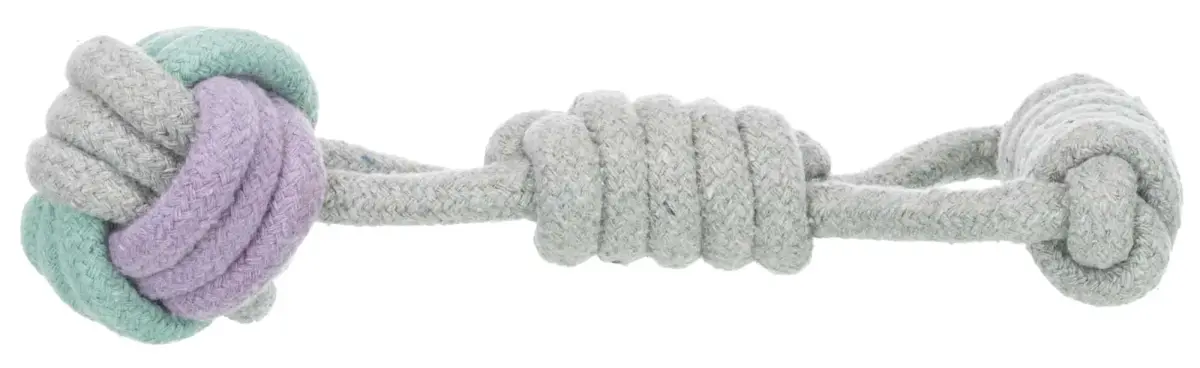 Trixie Игровая веревка с вплетенным шариком ø 6 см/23 см Хлопковая игрушка для собак - веревка с шариком.