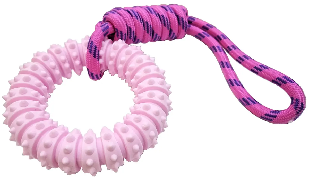 Веревочная игрушка для собак. Подходит для совместных игр с хозяином или другими собаками. Бугорки на кольце помогают поддерживать гигиену полости рта животного.