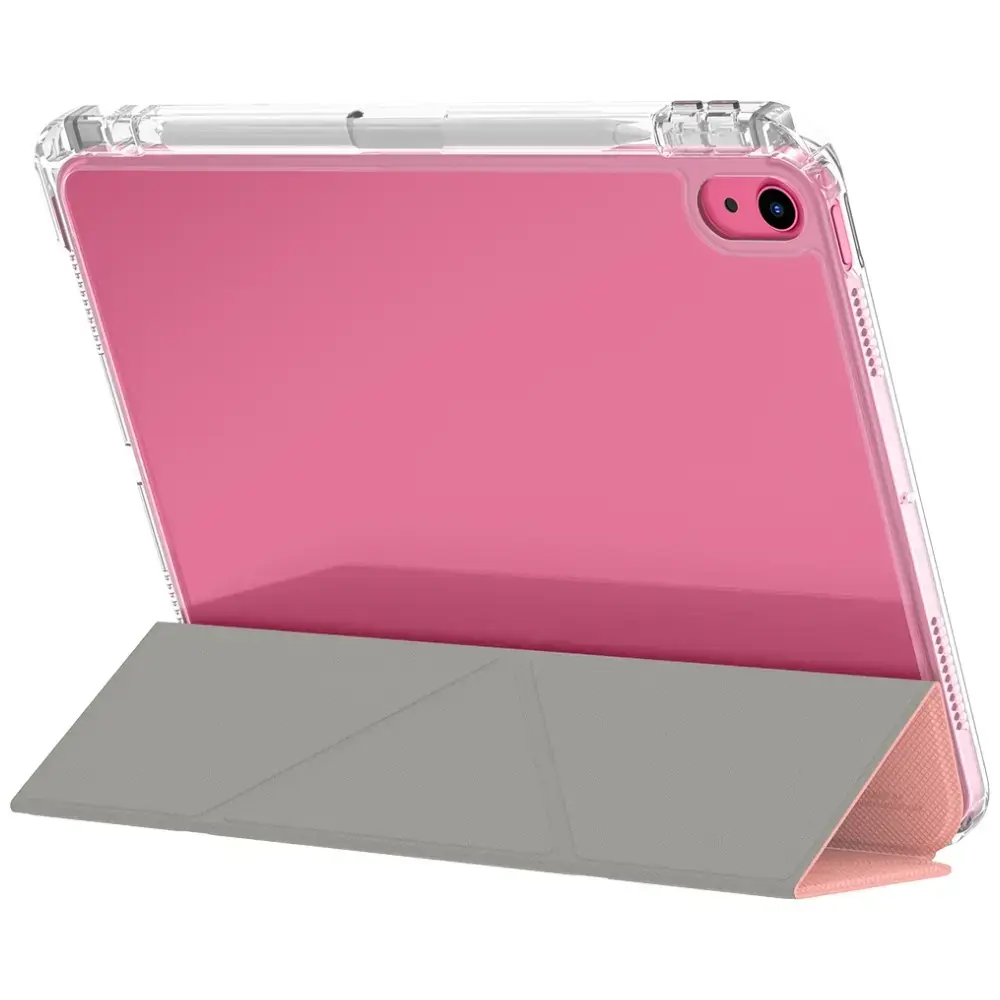 The case is equipped with a foldable and detachable Y-fold type cover, which allows you to set your iPad in three convenient positions – perfect for writing, watching movies, or video conferencing.