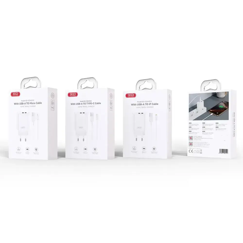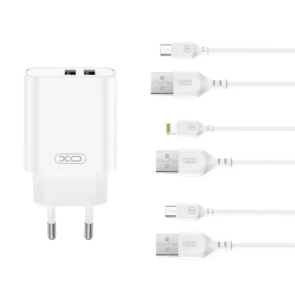 XO wall charger CE34 2x USB 2,4A white + microUSB cable