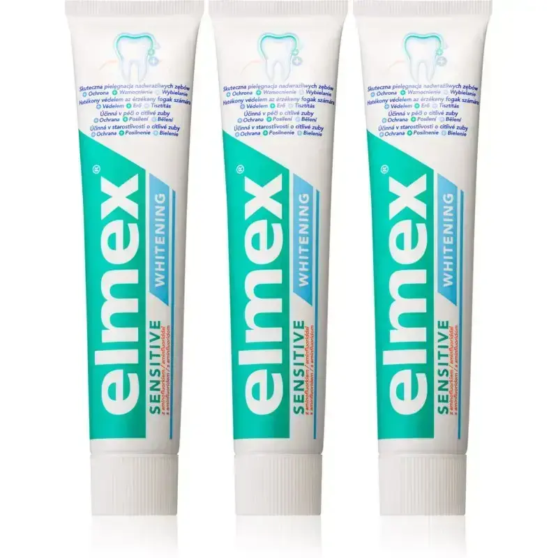 Elmex Sensitive Protection Gentle White, 3x75 ml, Toothpastes unisex, The Elmex Sensitive Protection Gentle White toothpaste for sensitive teeth guarantees you can have hot and cold drinks without an unpleasant sensation. Say goodbye to increased sensitivity in your teeth. Characteristics: reduces the sensitivity of teeth protects against tooth decay and plaque whitens teeth takes care of exposed teeth How to use: Use at least twice a day. Clean the teeth thoroughly for at least two minutes.