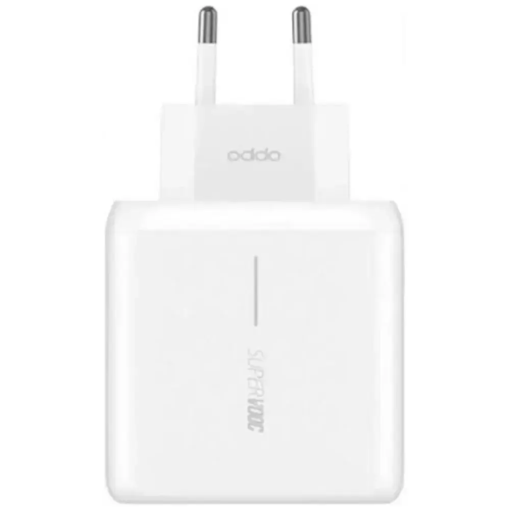 The OPPO 65W SuperVOOC Adapter White is an original OPPO wall charger with support for SuperVOOC 65 W technology, designed for fast and safe charging of modern smartphones and other mobile devices. The product stands out with its high output power and intelligent adjustment of charging power to the connected device, allowing maximum utilization of the battery capabilities of compatible models.
