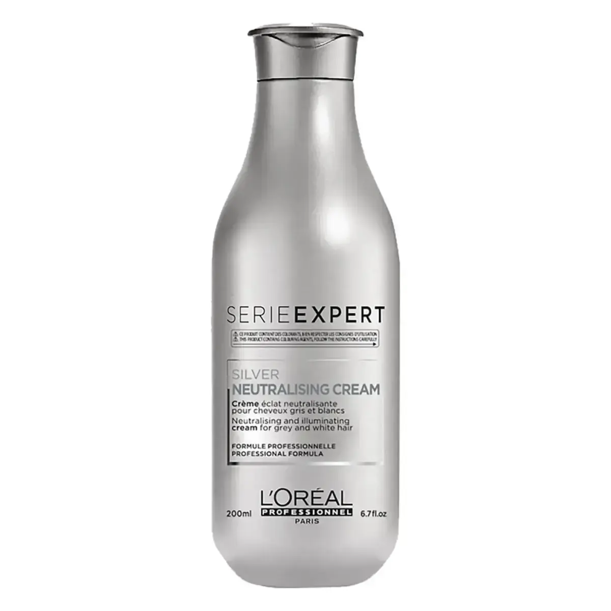 This silver neutralising and illuminating purple conditioner for light blonde, grey and white hair is a nourishing formula that protect the hair fibre and helps hair shine. Enriched with magnesium and anti-yellowing agents, helps counteract those unwanted brassy tones, this blue pigmented conditioner gives a boost of shine. Please note: As this product contains colourants, it is important to do a test-patch 48 hours before use. | L'oreal Professionnel Serie Expert Silver Conditioner 200Ml In Clear.