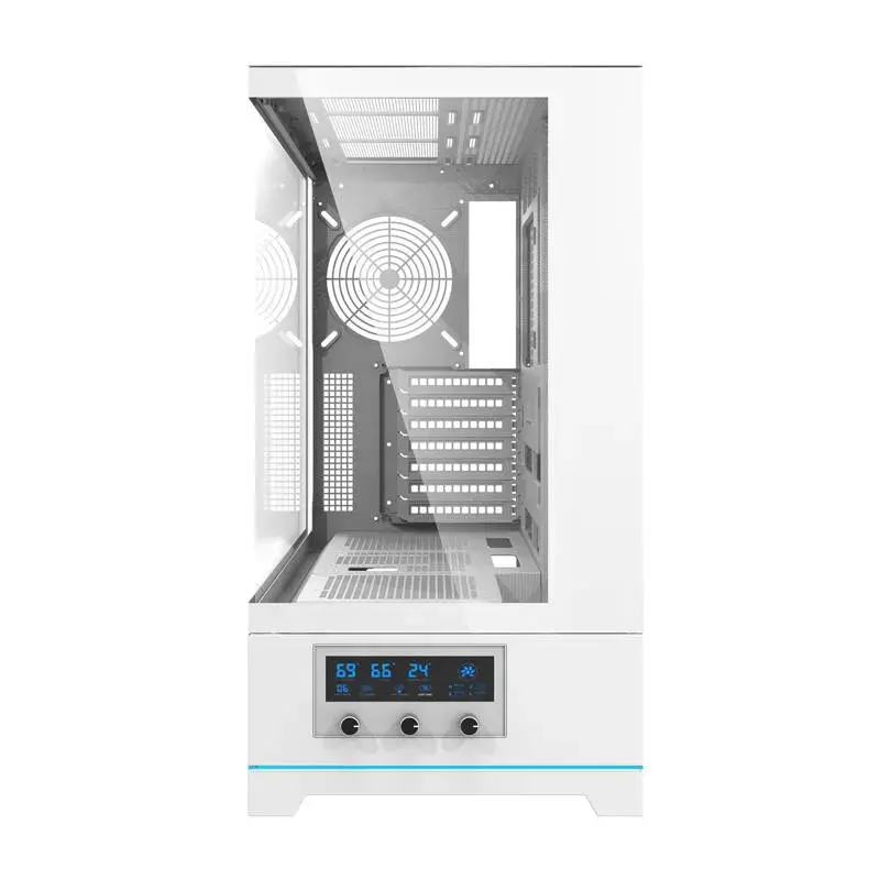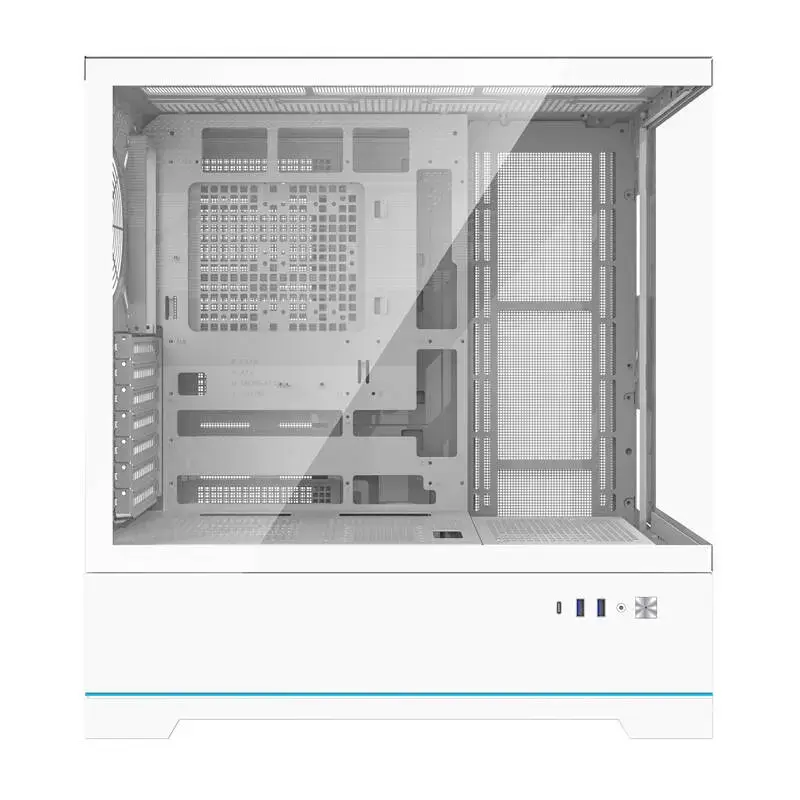 The Darkflash DY451 offers convenient, intuitive controls from the front panel. Users will find buttons for power on and restart, as well as ports: 2 x USB 3.0, USB-C and audio input. This allows users to quickly connect external devices and manage the cooling system.