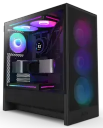 The NZXT H5 Flow RGB mid-tower chassis combines aesthetic appeal with functionality, featuring a meshed front and top panel that enhances airflow while showcasing high-performance components. Designed with tool-less side panels and covers, this case simplifies upgrades and maintenance, making it an ideal choice for both novice and experienced builders. The tempered-glass window side panel allows users to display their build, while an efficient cable management system ensures a clean and organized interior, providing ease of installation and airflow optimization.