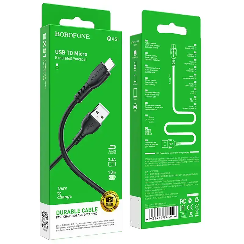 Borofone Cable BX51 Triumph - USB to Micro USB - 2,4A 1 metre black