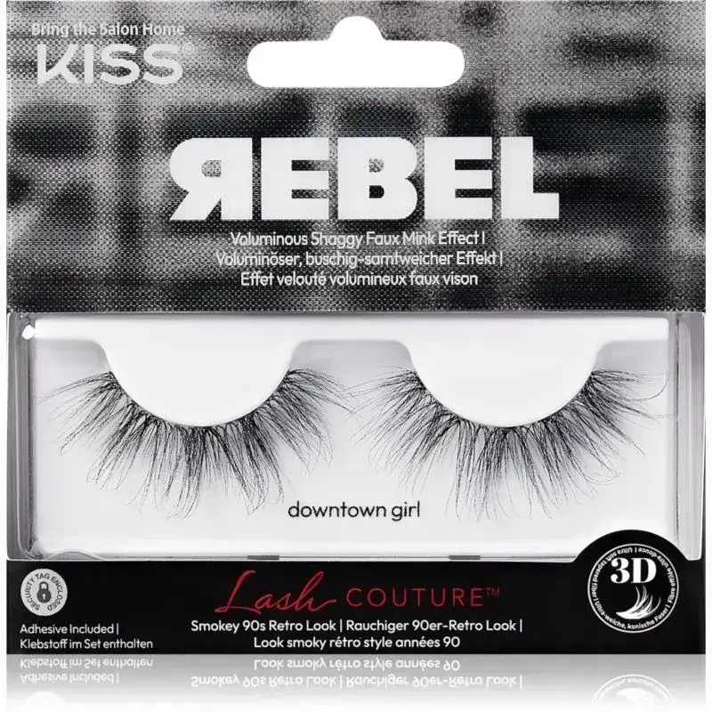 KISS Rebel, 2 pc, False Eyelashes for Women, Do you want to give your makeup look a new dimension and feel special thanks to beautifully fanned-out thick lashes? The KISS Rebel false eyelashes add maximum depth to your look, turning your eyes into a magnet that attracts the looks of those around you. Without having to apply several coats of mascara or visit a special salon for extensions, you can achieve the desired eye definition and intense look quickly and easily. Characteristics: creates a dramatic look instantly gives your makeup more intensity your lashes will instantly look longer and fuller comes with glue How to use: You can trim the fake lashes to the desired length depending on the size of your eyes. Apply the glue to the strip, let it dry for a moment and then place it on your eyelid as close to your lash line as possible. You can finish by curling your lashes with an eyelash curler. You can also brush through your lashes with a mascara to blend the natural and fake lashes together.