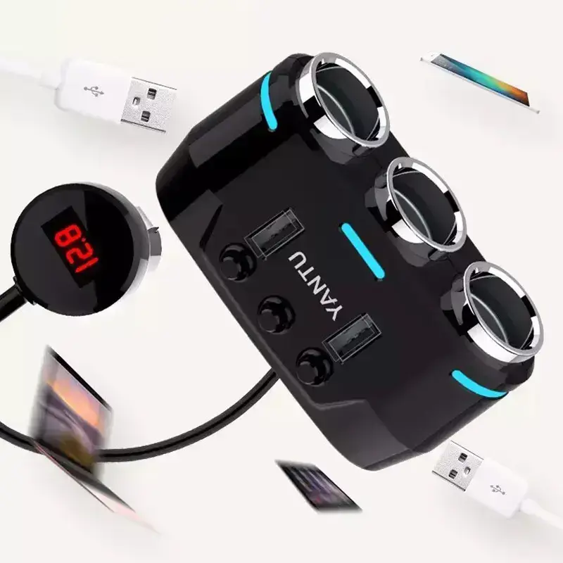 Support of three USB independent cigarette lighter