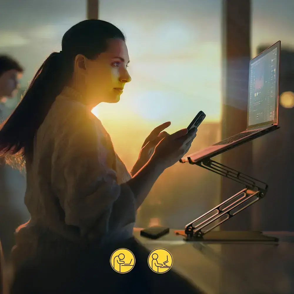 Double arm angle adjustment allows you to set your laptop in a comfortable position at a convenient height.