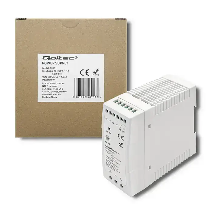 Qoltec DIN rail power supply | 40W | 24V | 1.67A | White | Slim