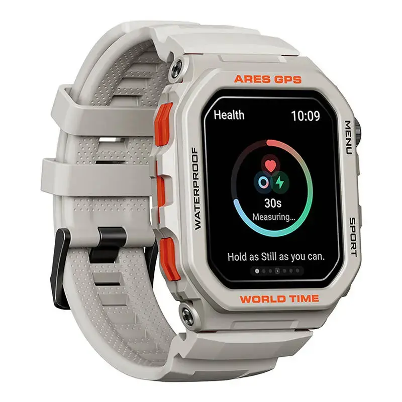 ManufacturerZeblazeModelAres GPSColorwhiteProduct nameRugged GPS SmartwatchDimensions47 x 40 x 12.7 mmWeight47g with strap, 29g without strapMaterial of constructionPlastic, stainless steel (navigation crown), silicone (strap)Water resistance3 ATMDisplay materialIPSScreen size1.75"Screen resolution240 x 296 pixelsGPSIntegrated GPS/BDS, GPS-assisted for high-speed timingBluetoothBLE 5.3Battery capacity380 mAhBattery lifeUp to 14 days in power saving mode, up to 7 days during heavy useType of chargingVia magnetic cableCharging time1.5 hoursStrap width18mmMaximum and minimum wrist circumference130-235mmSport modes60+Compatible operating systemsAndroid 5.0 or above, iOS 10.0 or aboveVariants of the watch face120+Editable watch faces30+Compatible appFitbeingOperating temperature0° to 45°C