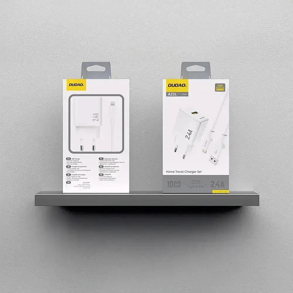 The Dudao A23LEU wall charger is a compact and reliable solution for everyday charging of Apple devices with a Lightning port. Thanks to GaN technology, it offers stable performance in a small size, making it a practical choice for home, office, and travel. A maximum current of 2.4A allows for efficient and safe charging of iPhones and other compatible accessories. A 1-meter USB-A to Lightning cable is included, making the charger ready to use right out of the box. The white, minimalist design fits seamlessly into modern environments.