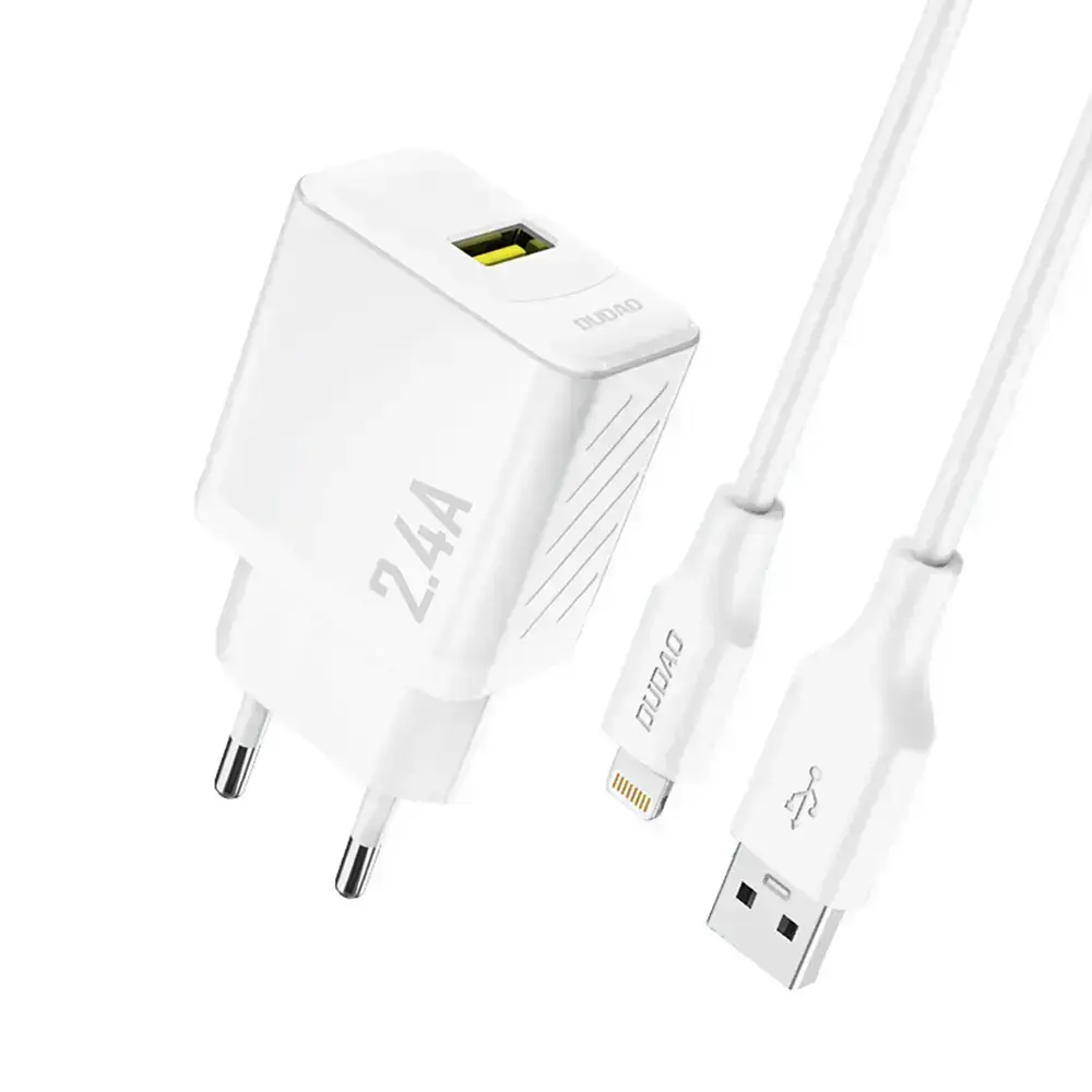 Dudao A23LEU 2.4A GaN EU USB-A Wall Charger with USB-A to Lightning Cable - White