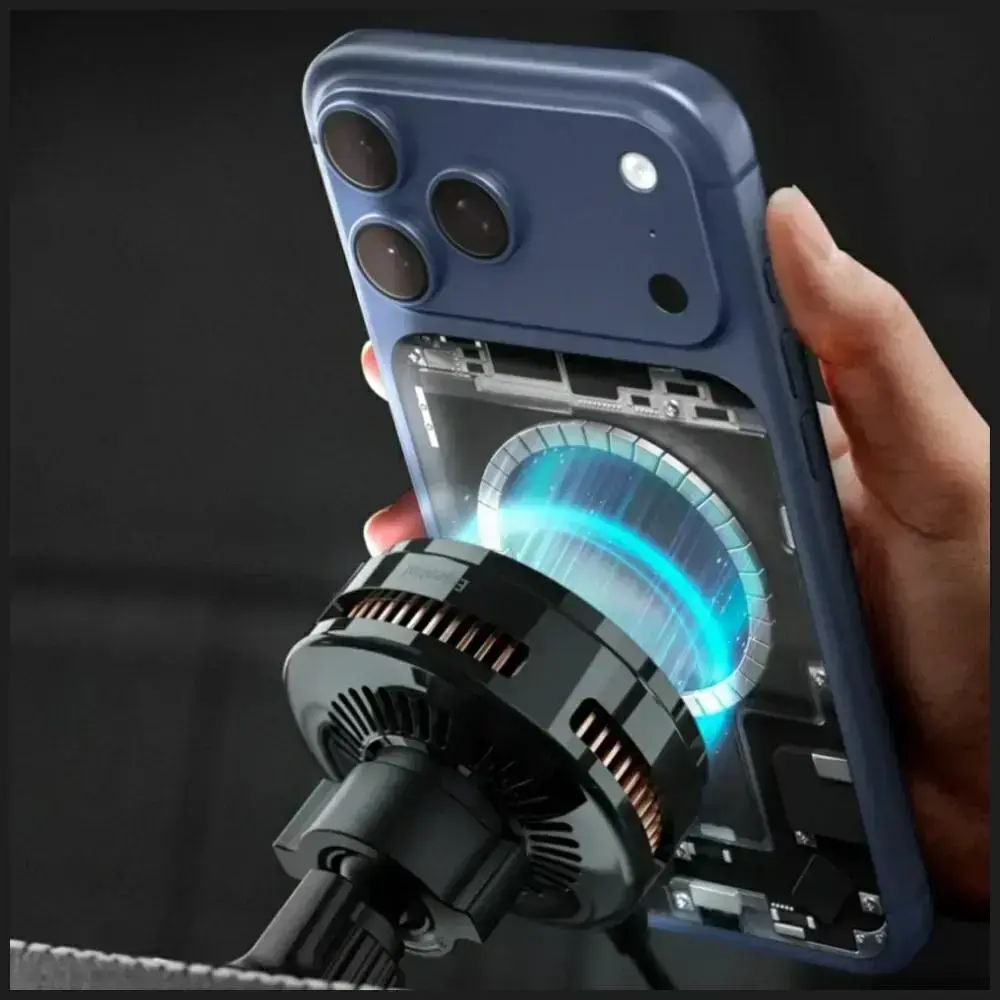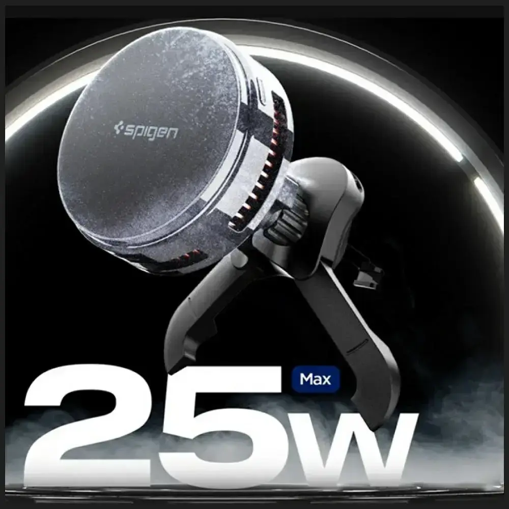 Uchwyt samochodowy do kratki wentylacyjnej Spigen Essential indukcyjny Qi2.2 25W MagSafe czarny