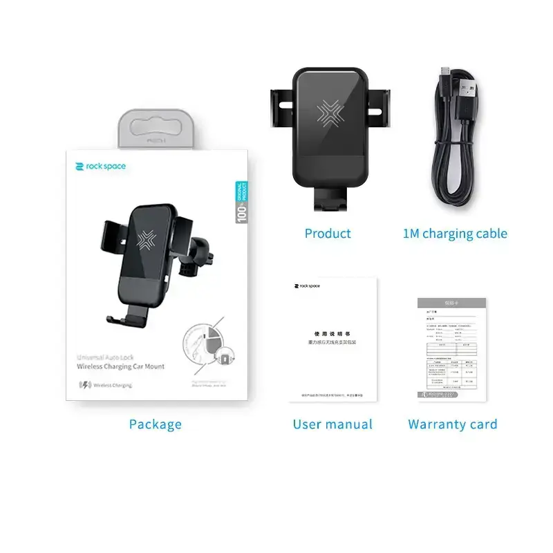 Rock Space EDZ-03 – Qi Wireless Charging Car Mount | Gravity Auto Lock & Fast Charging