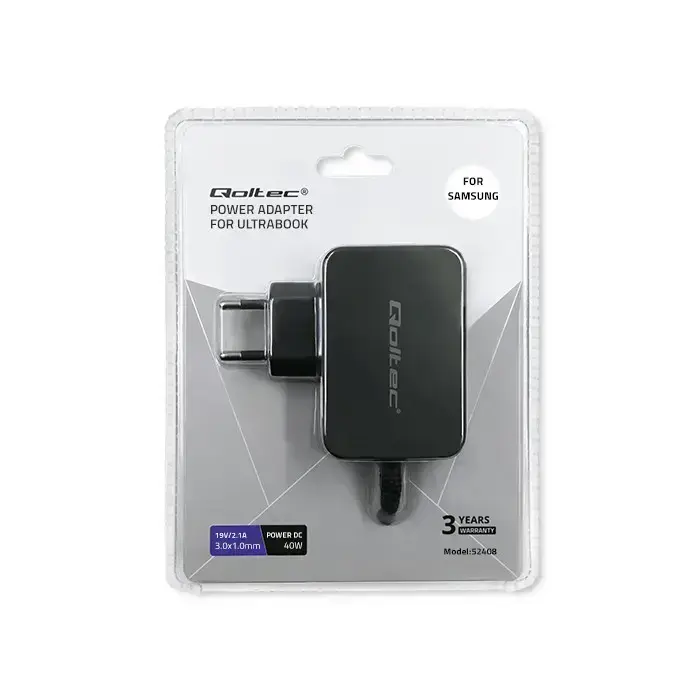 Qoltec Power adapter for ultrabook laptop Samsung 40W | 19V | 2.1A | 3.0*1.0