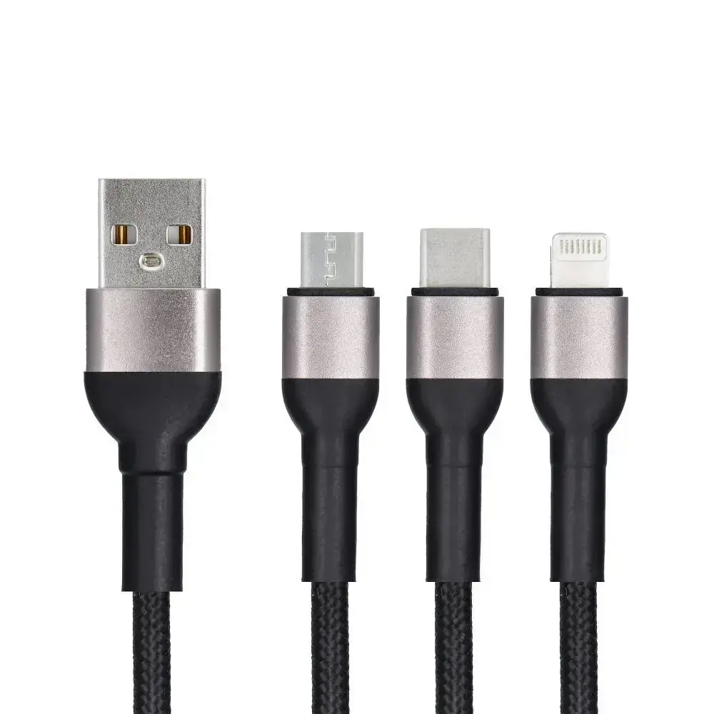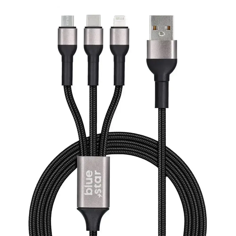 Cable 3in1 USB A to Lightning / Micro USB / USB C Blue Star 2,4A with braid 1,2 m TFK-DC-010 black