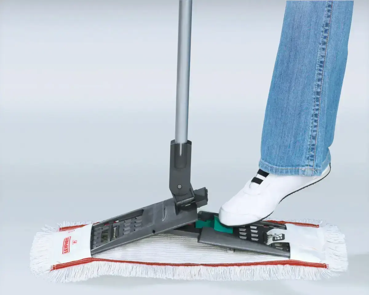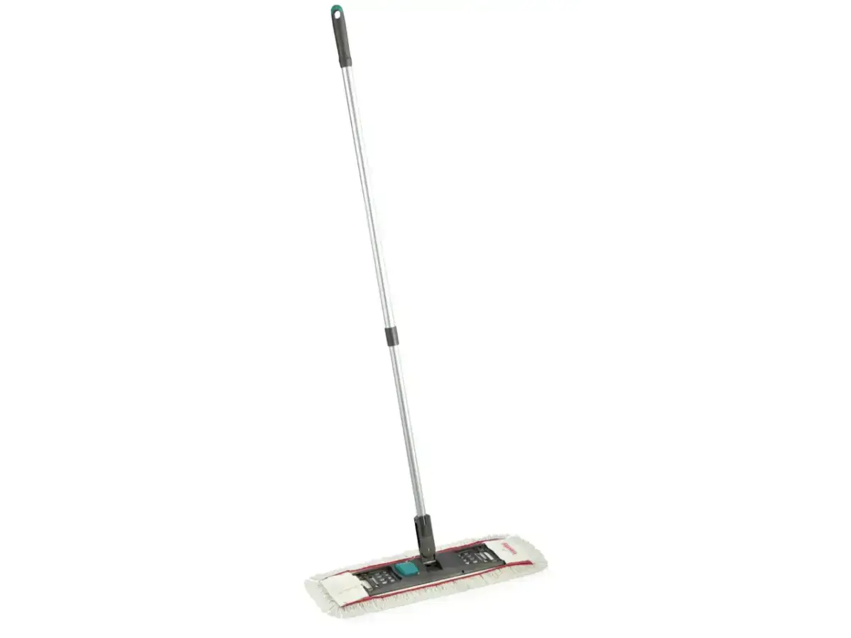 The LEIFHEIT Professional Floor Brush has a patented foot switch mechanism that allows you to remove the floor cleaning cloth from the bottom of the foot without bending down and without using your hands. Your hands will stay clean and dry.