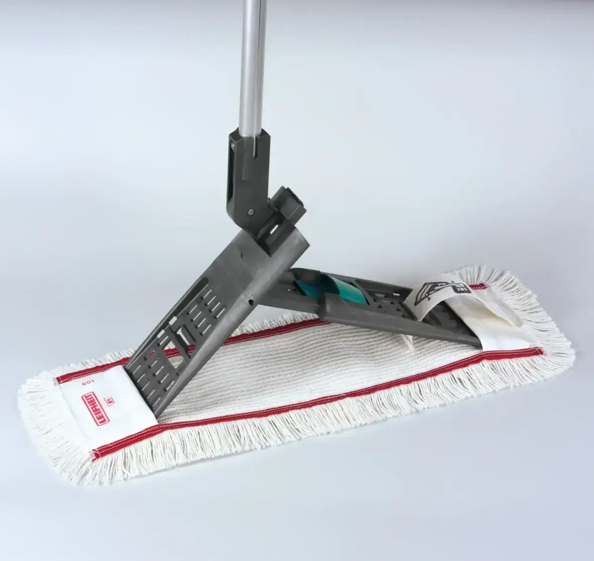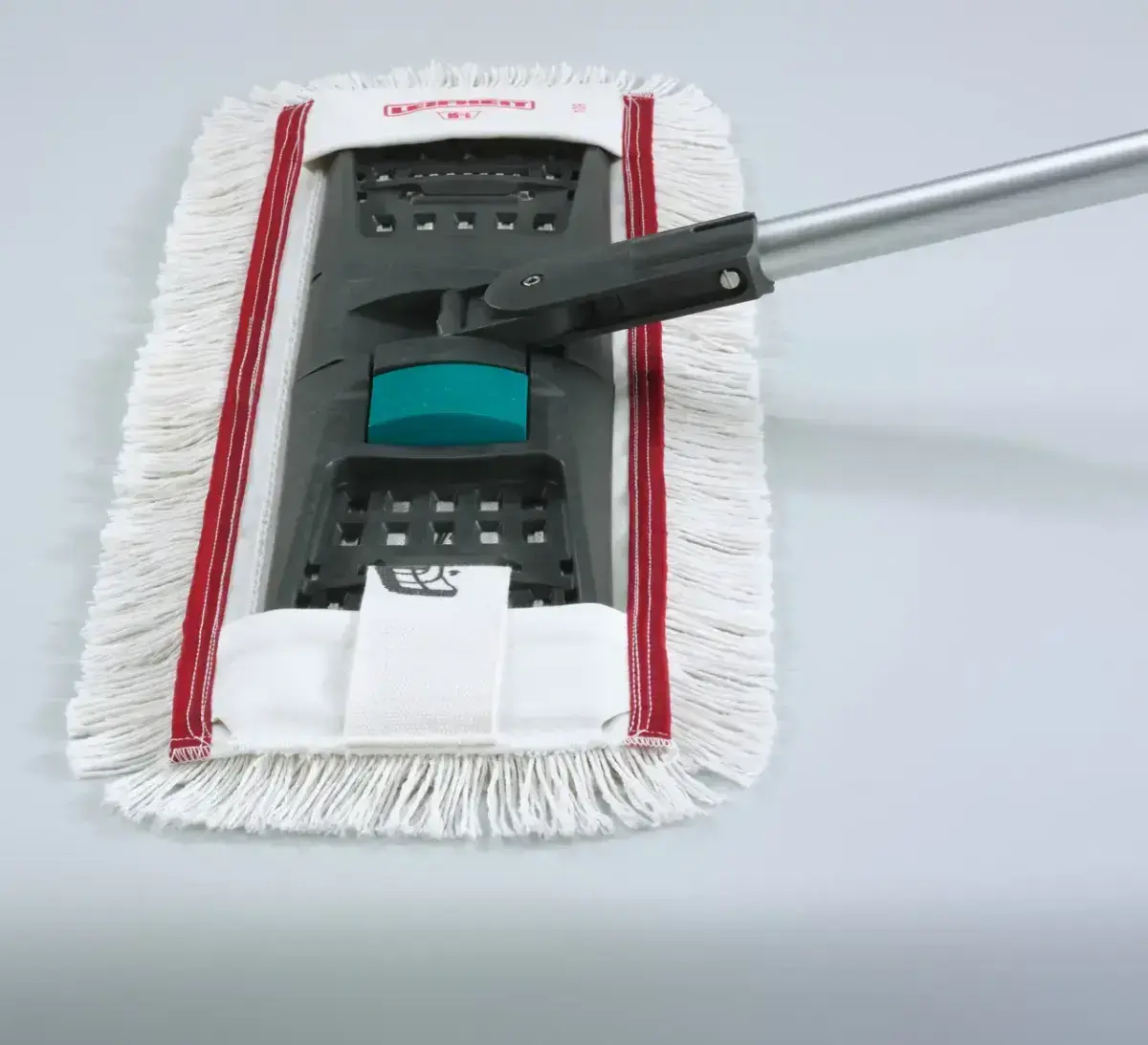 Everyone purchases the LEIFHEIT Professional Floor Brush for the convenience of the patented switch mechanism that allows you to change the glide wash cloth with the help of your foot. You won't have to bend down, you won't have to pick up the rag with your hands, so your hands will stay clean and dry. The locking tape ensures that after removing the mop to place it in the rinse water and then into the press mechanism, you do not have to use your hands to rinse it in the water, so your hands remain clean and dry at this point too.
