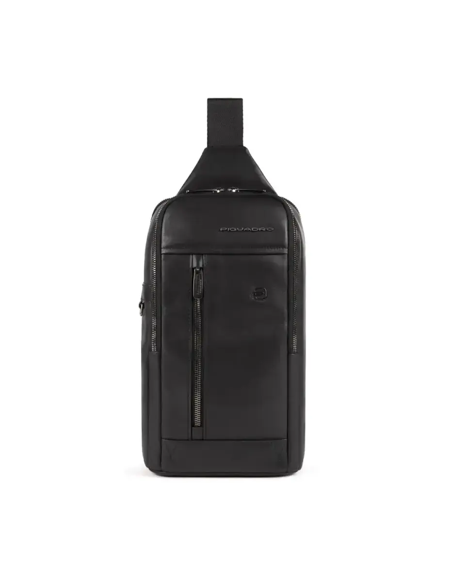 Piquadro, Monospalla, Leather, Leather Backpack, Black, Mono Sling, For Men, 19 x 32 x 8 cm