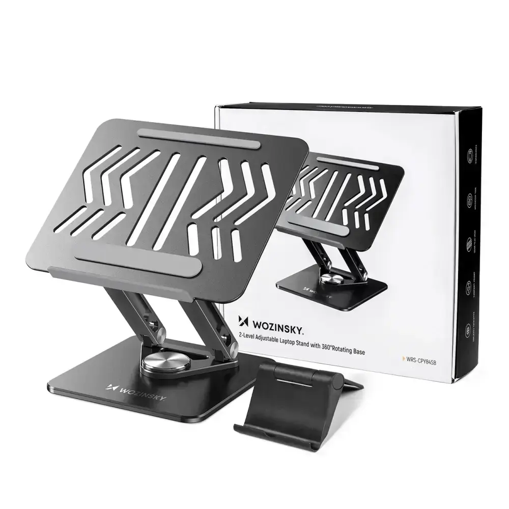 Wozinsky WRS-CPY84SB 360 Aluminum Laptop and Tablet Stand + Free Smartphone Stand - Black