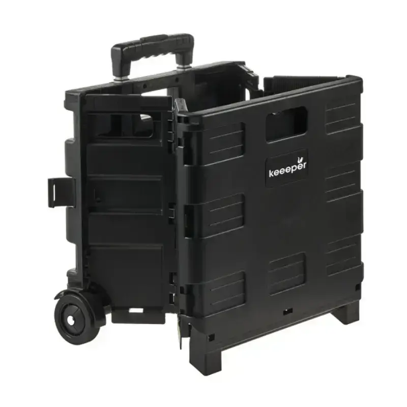 The Keeper Olli Folding Shopping Trolley is a great solution for anyone who needs a reliable and convenient way to transport their belongings. Its high-quality plastic construction, spacious 45-liter capacity and easy-to-fold design make it ideal for everything from grocery shopping to carrying laundry or outdoor gear. The two-wheel design ensures smooth rolling, while the sleek black look adds a modern touch.