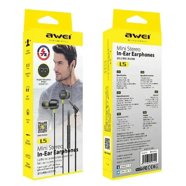 AWEI słuchawki stereo L5 3,5mm jack czarny|black