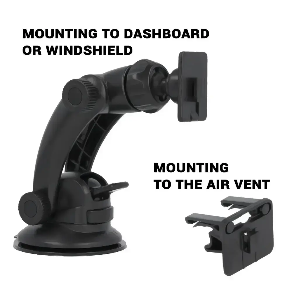 - Mounting options: windshield, dashboard, or air vent – with the included accessory, the holder can be mounted on the air vent or on the windshield and dashboard.