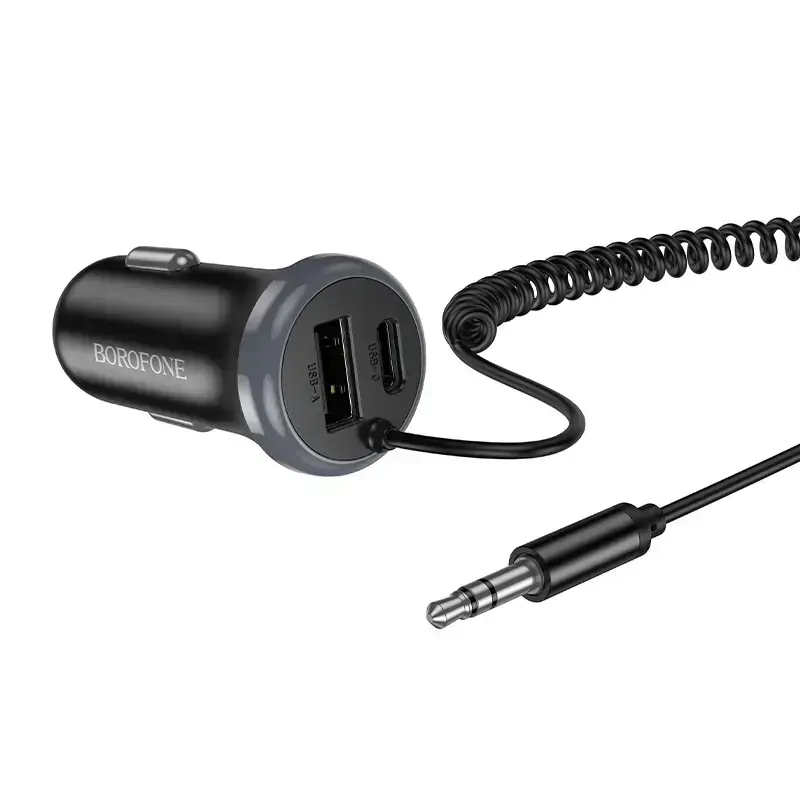 It lets you stream music from your smartphone to a car radio, speaker or home audio system with a 3.5 mm input. The Bluetooth 5.4 module with JL AC6966 chip provides a stable connection and low latency, while the lightweight body with a flexible spring cable (up to 1 m) makes it perfect for in-car and home use. Additional USB-C and USB-A ports can be used as power outputs for charging devices (up to 15 W total).