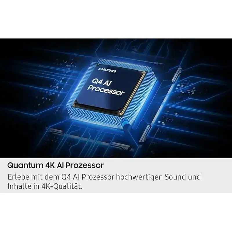 Q4 AI ProcessorErlebe 4K mit AI100% Farbvolumen mit Quantum DotEine Milliarde FarbstufenGrenzenloses EntertainmentGreife kostenlos auf über 300 Sender zuAirSlimHauchdünne Rahmen treffen auf ultraschlankes ProfilEine Milliarde Farbstufen100% Farbvolumen mit Quantum DotReal Quantum Dot-Technologie liefert unser bisher bestes Bild. Mit einem Farbvolumen von 100 % nimmt Quantum Dot das Licht auf und verwandelt es in atemberaubende Farben, die bei verschiedenen Helligkeitsstufen erhalten bleiben.Personalisiere dein TV-ErlebnisOne UI TizenBasierend auf Samsung Tizen OS™, bietet dir die Bedienoberfläche One UI Tizen ein TV-Erlebnis, das du ganz nach deinem Geschmack gestalten kannst. Ausserdem kommst du mit One UI Tizen in den Genuss aller neuen und innovativen Samsung Funktionen. Um den Schutz für dich und deine SmartThings-Geräte zu erhöhen, ist One UI Tizen darüber hinaus durch Samsung Knox gesichert. Nicht zuletzt unterstützt One UI Tizen auch Tizen-OS-Upgrades für die nächsten sieben Jahre.Greife kostenlos auf über 300 Sender zuGrenzenloses EntertainmentEntdecke mehr als 300 kostenlose Sender, darunter alleine mehr als 140 Premium-Kanäle von Samsung TV Plus. Freu dich auf Nachrichten, Sport, Filme, Unterhaltung, Musik, Kindersendungen und vieles mehr. Dank ständig neuer Inhalte ist Abwechslung garantiert.Verbinde deine smarten Geräte kabellos mit dem FernseherSmartThingsMit einem integrierten SmartThings Hub deines Fernsehers kannst du smarte Geräte, die mit Matter- und HCA-Standards kompatibel sind, kabellos verbinden und steuern, ohne dass du ein zusätzliches Gerät benötigst. Checke Benachrichtigungen über den Status deiner smarten Geräte direkt über den Fernsehbildschirm. Dank der Funktion 3D Map View behältst du deine vernetzten Geräte auf deinem TV-Gerät dabei intuitiv im Blick.Deinen Fernseher flexibler aufstellenAnpassbarer StandfussFür das beste ein beeindruckendes Fernseherlebnis kannst du die Position deines Fernsehers dank des verstellbaren Standfusses ganz einfach anpassen. Er ist auch ideal, um eine Soundbar darunter zu montierenEinfach mit Licht aufladenSolarCell RemoteMit dem auf der Rückseite integrierten Solarmodul kannst du deine Fernbedienung bequem per Sonnenenergie aufladen und in Zukunft auf Einwegbatterien verzichten. Darüber hinaus bietet sie dir smarte Funktionen wie das integrierte Mikrofon, mit dem sich ganz bequem ein Sprachassistent aufrufen lässt.