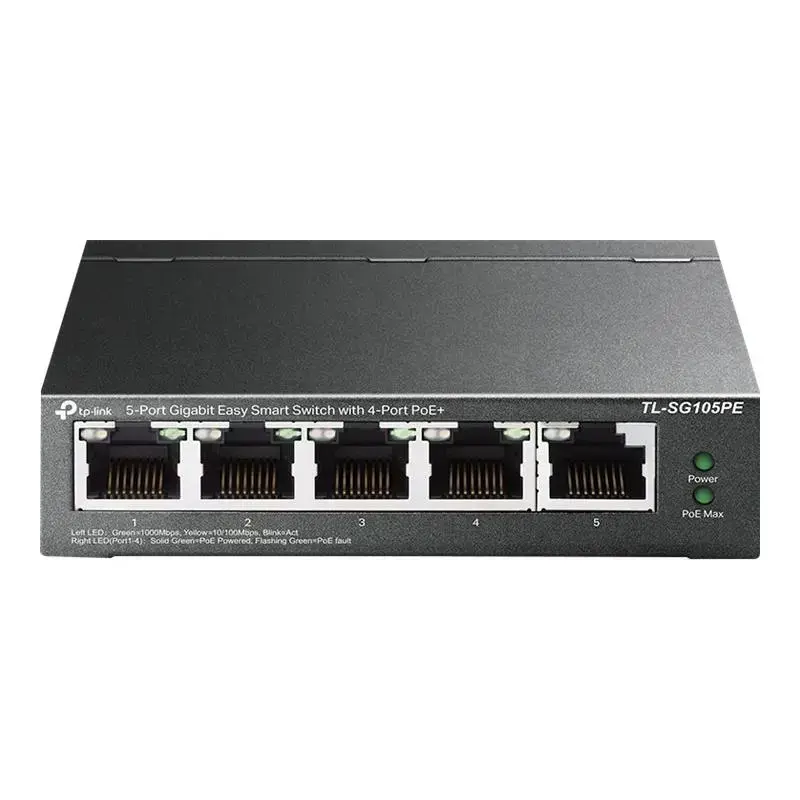Professionelles 5-Port-Gigabit-Easy-Smart-Switch mit 4 PoE+-PortsEinfach zu verwenden, für eine Vielfalt an Einsatzmöglichkeiten und eine starke PoE-LeistungFür viele AnwendungsbereicheDer TL-SG105PE ist vollständig mit PoE-Geräten wie IP-Kameras, Accesspoints und IP-Telefone kompatibel. Der Switch funktioniert auch mit Geräten, die keine PoE-Versorgung benötigen, wie PCs, Drucker und IPTVs. ÜberwachungssystemeVersorgt und verbindet IP-KamerasTelefonieVersorgt und verbindet IP-Telefone WLAN-VersorgungVersorgt und verbindet WLAN Accesspoints LAN-VerbindungenVerbindet PCs und Drucker4 dedizierte PoE+-Ports mit 65 W Budget für eine Vielzahl an AnwendungenDer TL-SG105PE bietet eine PoE-Versorgung nach den Standards 802.3af/at PoE+ mit bis zu 30 W je PoE-Port. Das 65 W PoE-Budget* für 4 Gigabit-PoE+-Ports ermöglicht eine Vielzahl an Einsatzmöglichkeiten, wie zum Beispiel für Überwachungssysteme, Büros, Wohnheime und Betriebe. Der Switch ist vollständig mit standardisierte PoE-Clients kompatibel, wie IP-Kameras, Accesspoints, IP-Telefone, Computer, Drucker u. v. m..Viele zusätzliche Funktionen ermöglichen ungeahnte LösungenQoS für eine Verzögerungsfreie ÜbertragungSichert eine flüssige Übertragung für Latenzempfindliche Anwendungen wie für Audio- und VideoübertragungenIGMP Snooping für Multicast-ÜbertragungenSichert eine optimale Netzwerkübertragung besonders für Anwendungen wie IPTV.VLAN für Sicherheit, Schnelligkeit und Zuverlässigkeit.Unterstützt bei der Erstellung von Netzwerken, um die Sicherheit und Leistung enorm zu erhöhen, indem das Netzwerk in kleinere Segmente unterteilt wird.Netzwerkverwaltung leicht gemachtDer TL-SG105PE bietet eine Netzwerküberwachung, damit Nutzer den Datenübertragungen einsehen können. Über die Web-Oberfläche oder Management-Utility bietet der TL-SG105PE eine Vielzahl an nützliche Funktionen wie die Netzwerküberwachung, Übertragungspriorisierung und erweitertes QoS.Viele Eigenschaften garantieren den stabilen BetriebSelbständige Systemwiederherstellung von verbundenen PoE-GerätenDer Switch erkennt automatisch, wenn versorgte Geräte wie Accesspoints und Kameras offline gehen oder ausfallen und startet diese Geräte über die PoE-Versorgung neu. So wird ein stabiler Betrieb der verbundenen PoE-Geräte ohne dass eine Überwachung und ein manuelles eingreifen für diese Geräte notwendig ist.Intelligente PoE-VersorgungFalls die benötigte PoE-Leistung 65W überschreitet, greift die intelligente PoE-Versorgung ein und unterbricht die Versorgung des Ports mit der geringsten Priorität und dadurch steht mehr PoE-Leistung den übrigen Ports zur Verfügung. So wird die PoE-Versorgung der Ports mit einer höheren Priorität gewährleistet und der Switch vor einer Überspannung geschützt.Hohe Kompatibilität bei der Erkennung von PoE-GerätenErkennt automatisch PoE-Geräten und die benötigte PoE-Leistung und schützt dadurch nicht-PoE-Geräte.Robustes MetallgehäuseDie internen Komponenten von dem TL-SG105PE werden durch ein hochqualitatives Metallgehäuse geschützt, um eine lange Lebenszeit sicherzustellen. Strenge Qualitätskontrollen und umfangreiche Zuverlässigkeitstests geben dem TL-SG105PE eine Zuverlässligkeit auf der Sie setzen können.