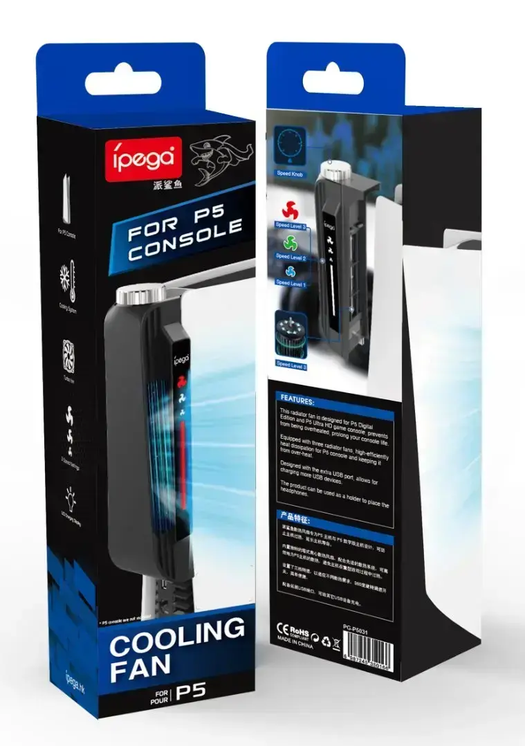 iPega přídavný ventilátor pro PlaySatation 5 pro maximálně efektivní chlazení herní konzole během hraní a USB výstupem.