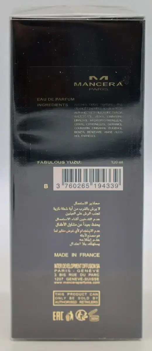 Mancera Paris Fabulous Yuzu 120ml Eau de Parfum Spray is a vibrant, luxurious fragrance that blends citrus freshness with refined elegance. Opening with an exhilarating burst of Japanese yuzu, lemon, and mandarin, this unisex scent delivers a crisp, zesty introduction. The heart reveals delicate notes of jasmine, mimosa, and lily-of-the-valley, while a warm base of sandalwood, vanilla, and tonka bean adds depth and sophistication. Perfect for those who love fresh yet complex fragrances, Fabulous Yuzu is ideal for daytime wear, spring and summer seasons, or whenever you want to feel revitalized and refined. The 120ml size offers long-lasting value and extended wear. Key Features: Fragrance family: Citrus Aromatic Top notes: Yuzu, Lemon, Mandarin Orange Heart notes: Jasmine, Mimosa, Lily-of-the-Valley Base notes: Sandalwood, Vanilla, Tonka Bean Gender: Unisex Fresh, elegant, and long-lasting scent Ideal for: Daily wear, warmer seasons, or uplifting any moment Discover the radiant charm of Mancera Fabulous Yuzu – a citrus masterpiece that combines freshness and luxury in perfect harmony.