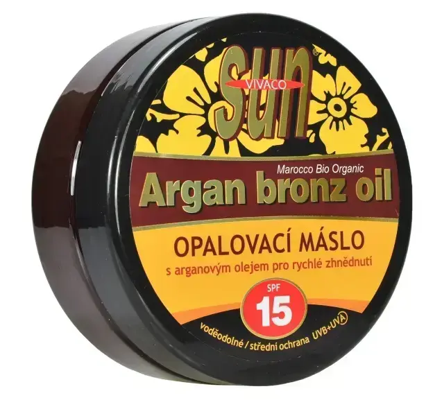 Untul de bronzare Argan bronz oileste un produs hidratant cu ulei de argan bio i beta-caroten pentru un bronz intens, rapid i de lung durat. Uleiul catifelat cu vitamina E protejeaz mpotriva uscrii i mbtrnirii pielii. Beta-carotenul ajut la meninerea bronzului mult timp. Rezistent la ap, este uor de aplicat, Este de asemenea potrivit pentru pielea delicata a copiilor de la 3 ani,.