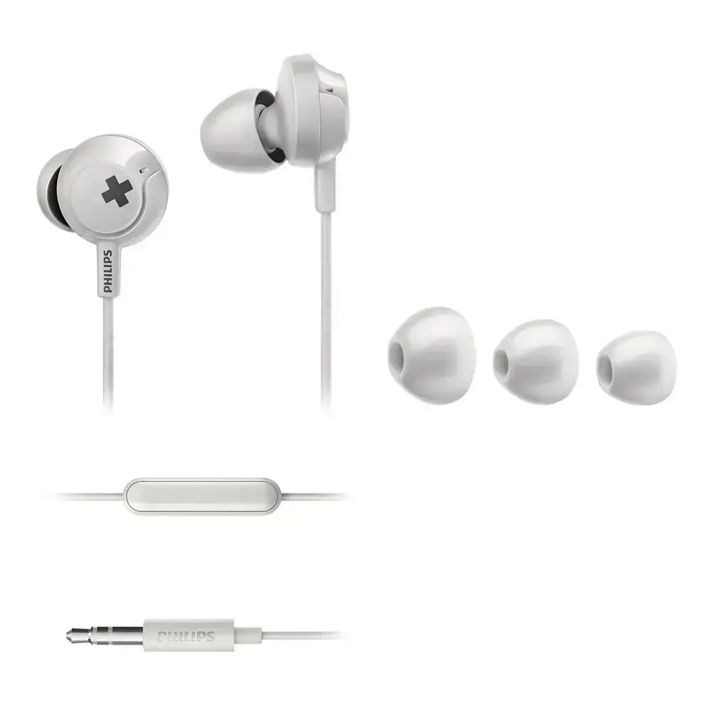 The Philips SHE4305WT in-ear headphones are lightweight and comfortable wired headphones designed for powerful, dynamic sound.Thanks to 12.2mm drivers and BASS+ technology, they deliver deep, punchy bass that lets you truly feel the beat of your favorite music.