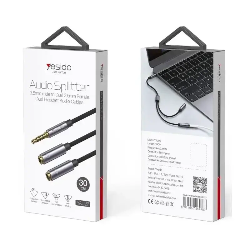 YESIDO's YAU27 Audio Cable is a reliable solution for music lovers who value excellent sound quality and reliability in any conditions. Made from the highest quality materials, it provides not only clean sound but also durability and ruggedness during use. The 3.5 mm Aux Male connector has been split into two female versions, allowing the connection of two sets of headphones simultaneously.
