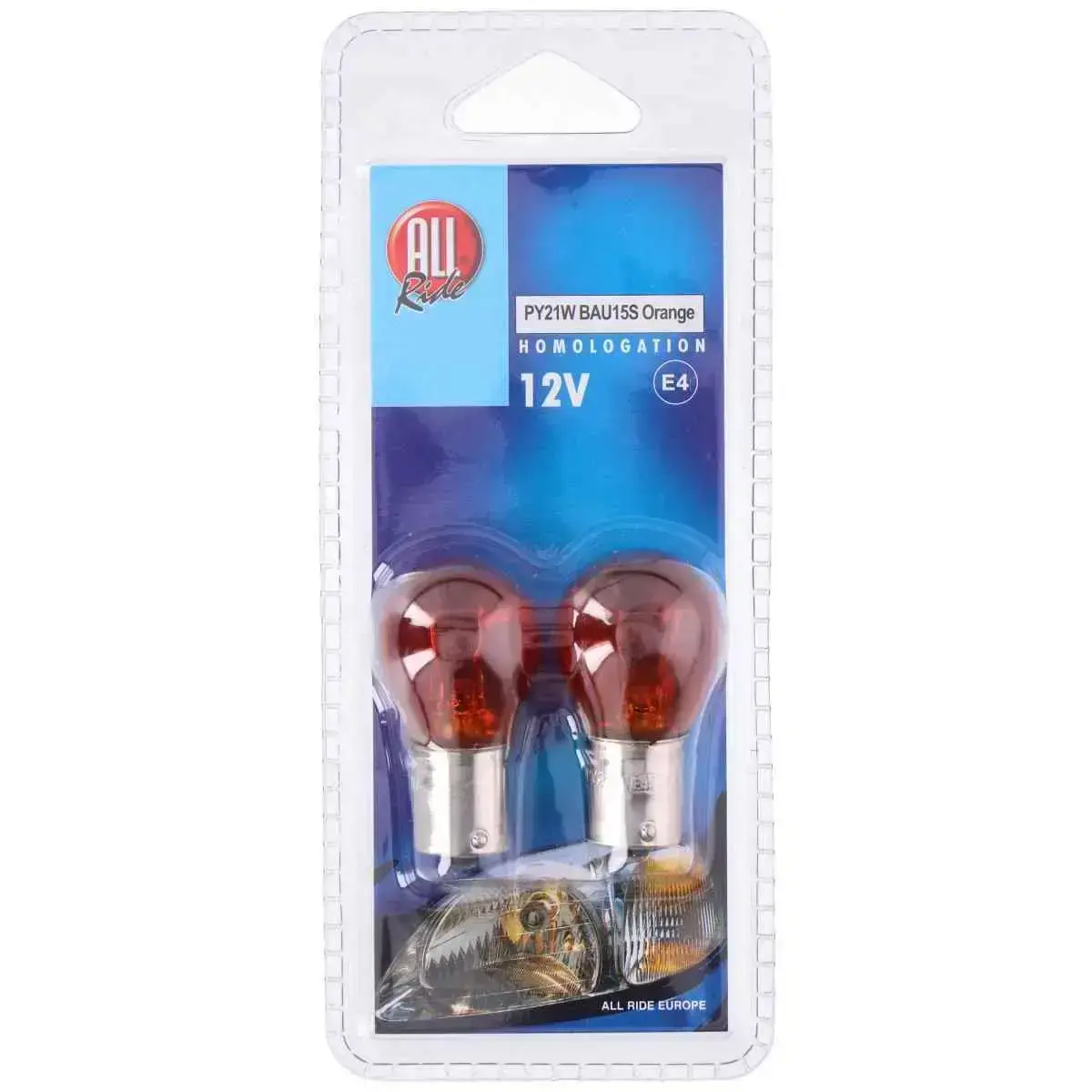 All Ride auto spuldzes PY21W / BAU15s ir piemērotas drošai un efektīvai transportlīdzekļa apgaismošanai, nodrošinot labu redzamību ceļā. Oranžā krāsa palīdz uzlabot pagrieziena signālu redzamību dažādos apstākļos, savukārt uzticama All Ride kvalitāte garantē ilgu kalpošanas laiku un stabilu darbību. Ērtais iepakojums ar divām spuldzītēm piemērots rezerves komplektam jebkuram autovadītājam. Darba spriegums 12 V.