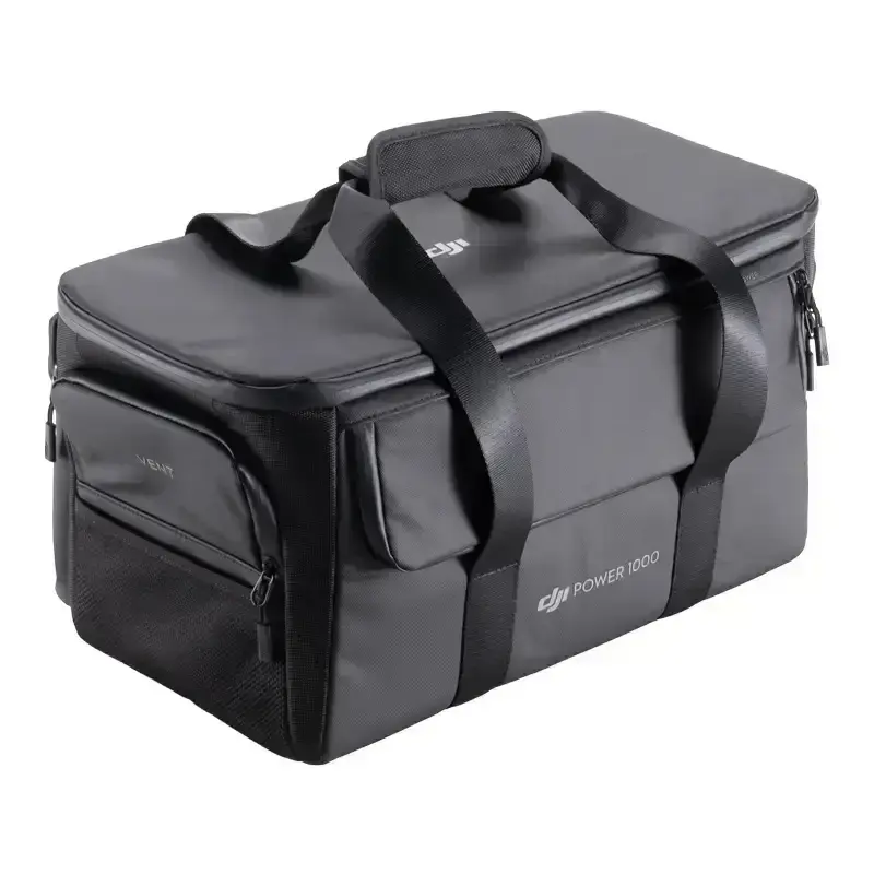 The DJI Power 1000 bag, model CP.QT.00009486.01, is an ideal solution for storing and transporting the DJI Power 1000 power station. Its dimensions are 452×240×232 mm, providing adequate space and one-handed carrying convenience. On the back of the bag is a separate space for cable management, making it easy to organize and use accessories. In addition, it has ventilation holes on the left and right handles, providing adequate air circulation. The practical design allows you to use the power station without removing it from the bag, thanks to a raised panel covering the power ports to protect it from accidental splashes and raindrops. This is a functional and useful accessory that will work in all conditions.