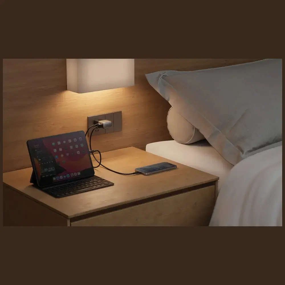 The TravelGo Adapter 35 wall charger ensures complete user protection with multi-level safety features against overload, overvoltage, short circuit, and overheating. Smart device recognition technology automatically adjusts charging parameters to the device’s needs, protecting the battery from damage. Despite its light weight and compact dimensions (80 × 46 × 27 mm), the charger features a solid build and high energy efficiency. It’s a reliable accessory that combines performance, safety, and portability in an elegant form.