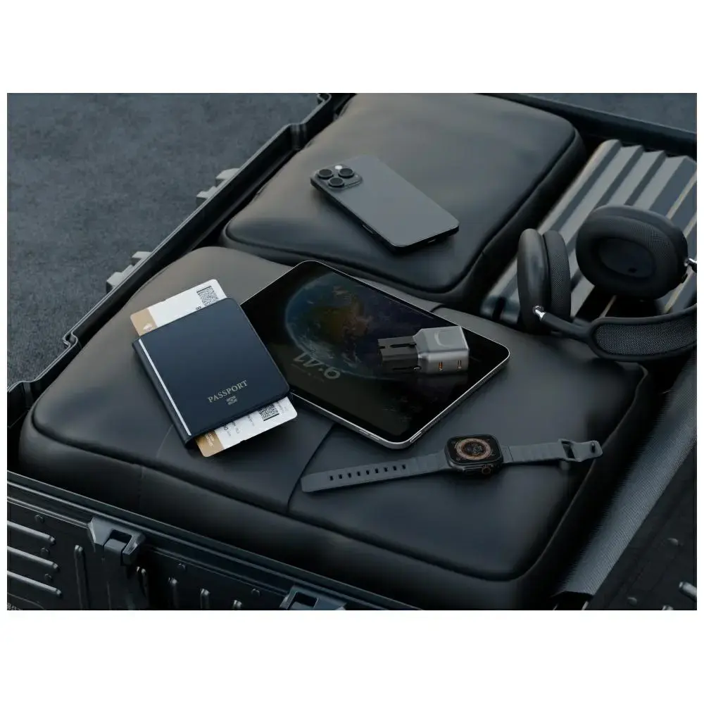 The TravelGo Adapter 45 charger is designed for users traveling around the world. It supports a wide voltage range of 100–240 V, making it suitable for use in over 150 countries. Interchangeable plugs allow adaptation to different socket types, so you never have to worry about compatibility. The pin lock system secures connectors from accidental detachment, ensuring a stable connection. It’s a solution perfect for use in hotels, offices, and even air travel.