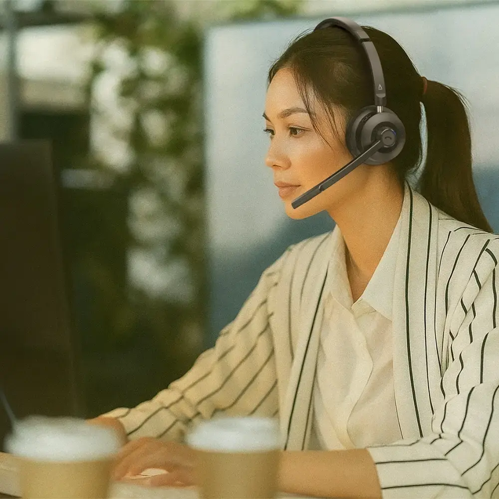 The headphones feature 30 mm neodymium drivers that offer a wide frequency range of 20 – 20,000 Hz. The sound is clear, balanced, and natural, making conversations sound realistic and music rich in depth and detail. The Creative Chat Wireless supports AAC and SBC codecs, ensuring high-quality audio even in wireless mode. Perfect for both office work and relaxing with your favorite playlists, delivering dynamic sound and deep bass.