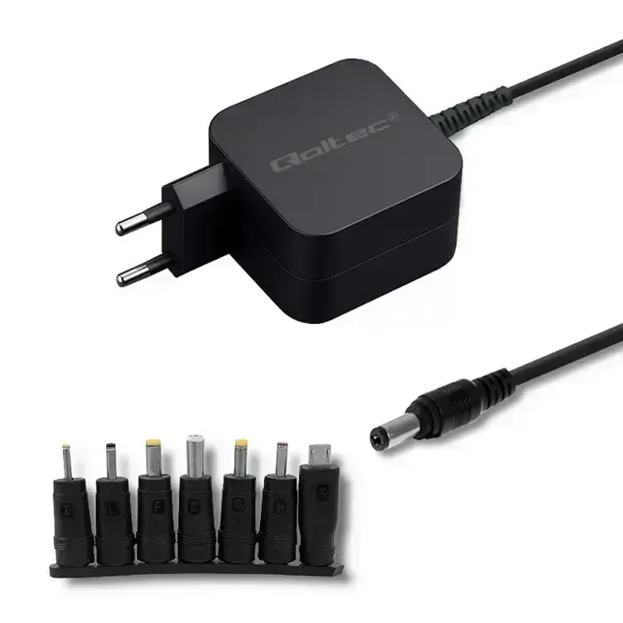 The Qoltec universal power supply is designed for use with devices that have compatible parameters. It guarantees safe power and usage. It can be used at home or work. It has a range of protections to safeguard the connected device. It features high efficiency, which helps reduce energy consumption.