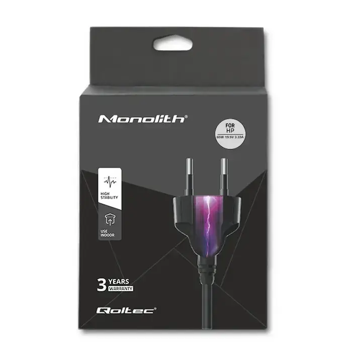 Qoltec Power adapter for laptop HP 65W | 19.5V | 3.33A | 4.5*3.0+pin | +power cable